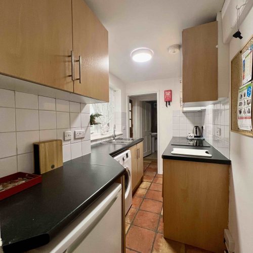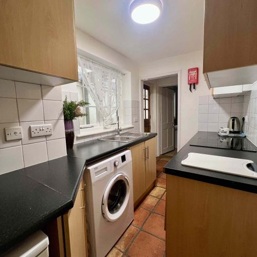 There is a comfortable shared lounge with dining space, and a shower/bathroom on the ground floor. There is a cottage-style galley kitchen with fridge, freezers and washing machine, leading to a small but very appealing walled garden to the rear.
