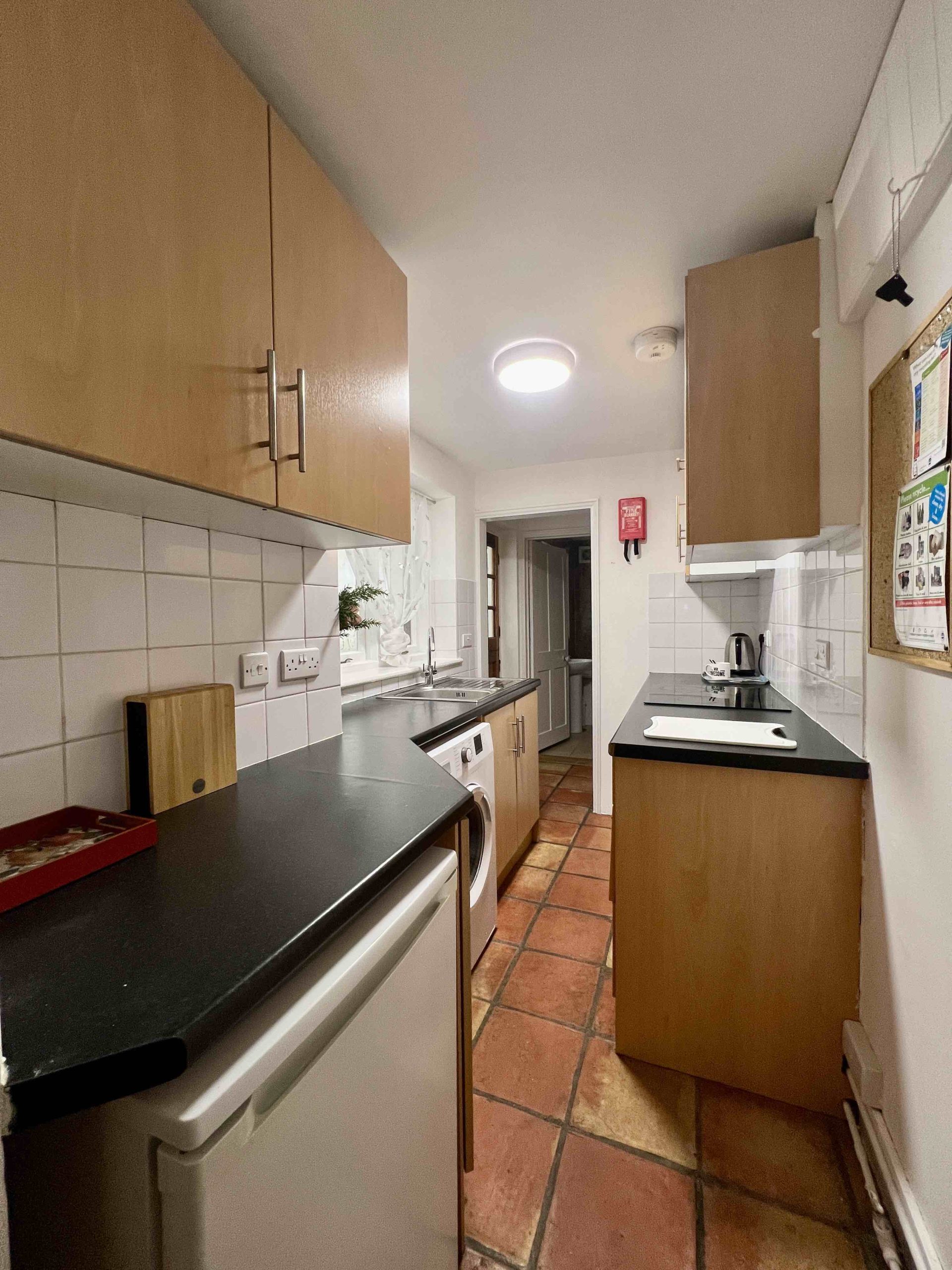 There is a comfortable shared lounge with dining space, and a shower/bathroom on the ground floor. There is a cottage-style galley kitchen with fridge, freezers and washing machine, leading to a small but very appealing walled garden to the rear.